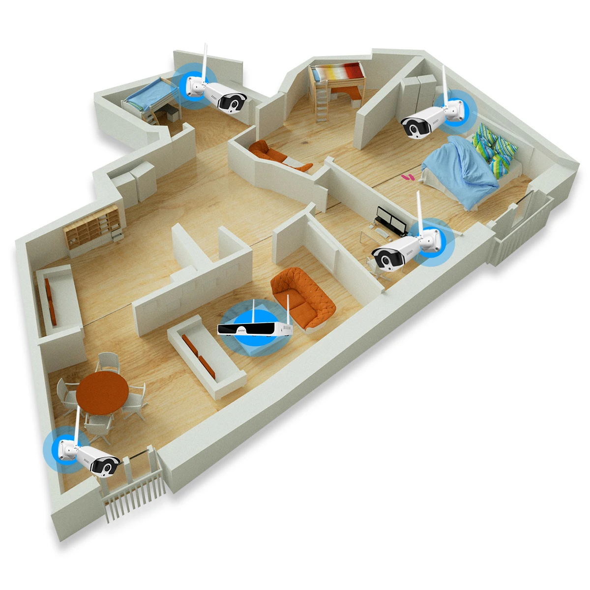 يستخدم هذا النظام اللاسلكي أحدث التقنيات المتتالية اللاسلكية. عندما تكون الكاميرا بعيدة عن NVR ، تسمح تقنية المتتالية اللاسلكية للكاميرا بنقل الإشارة إلى كاميرا أخرى أقرب إليها. تعمل تقنية المتتالية اللاسلكية على تحسين مسافة الإرسال والاستقرار بشكل كبير.