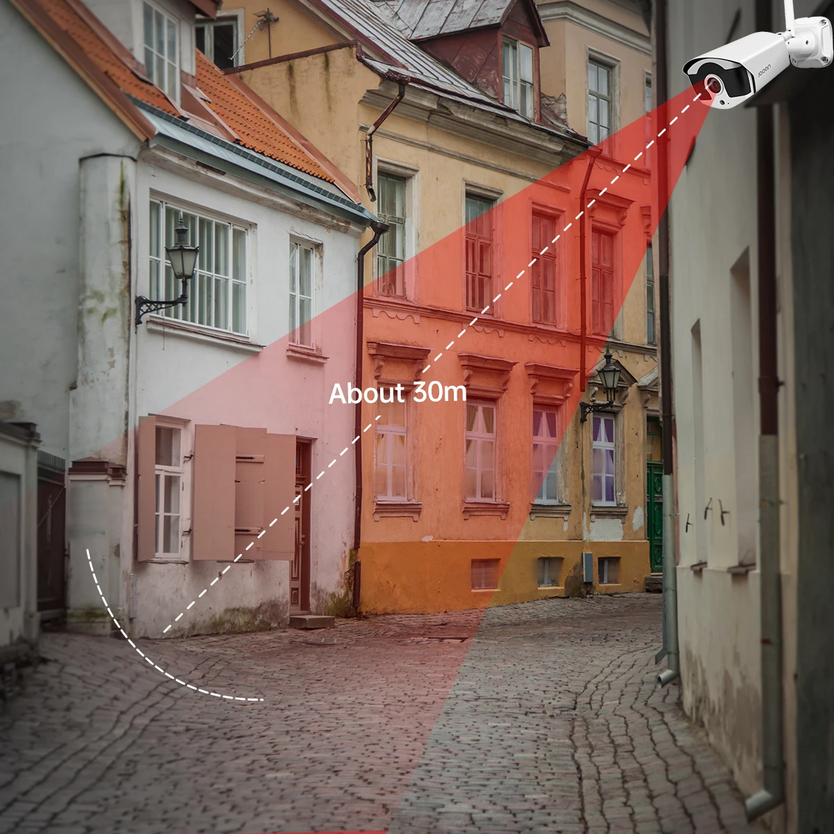 75 درجة زاوية واسعة عدسة 3.6 مللي متر ، مسافة تصل إلى 30 متر IR